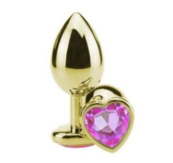 Delicado e sofisticado plug anal com formato cônico, feito de aço inoxidável, dourado. Possui joia na base com pedra na cor rosa.